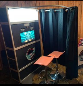 Enclosed booths are photo booths that completely surround the guests. It completely hides the person that goes in and takes a photo, almost like walking into a small room.